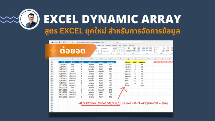 สูตร & ฟังก์ชัน + Excel Dynamic Array → 989 บาท